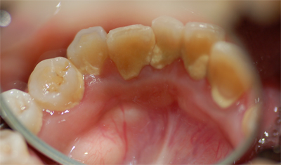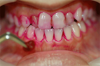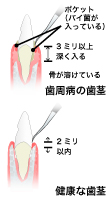 ■プラーク付着検査 : 歯と歯の間や歯と歯茎の境目にプラークが付着しています。 ■動揺度検査 : ピンセットで歯を動かしてみて動揺度を調べます。 ■歯周ポケットの測定検査 : 歯周病になると歯とはの間の溝(歯周ポケット)が深くなり、その中に歯石が溜まります。