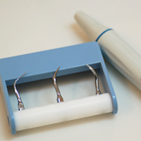 リーマーやファイルといった細い針のような器具の用い、根の深さを測る電機測定器を使って根の先まで施術しさらに根管を拡大し、歯質の菌を除去します。